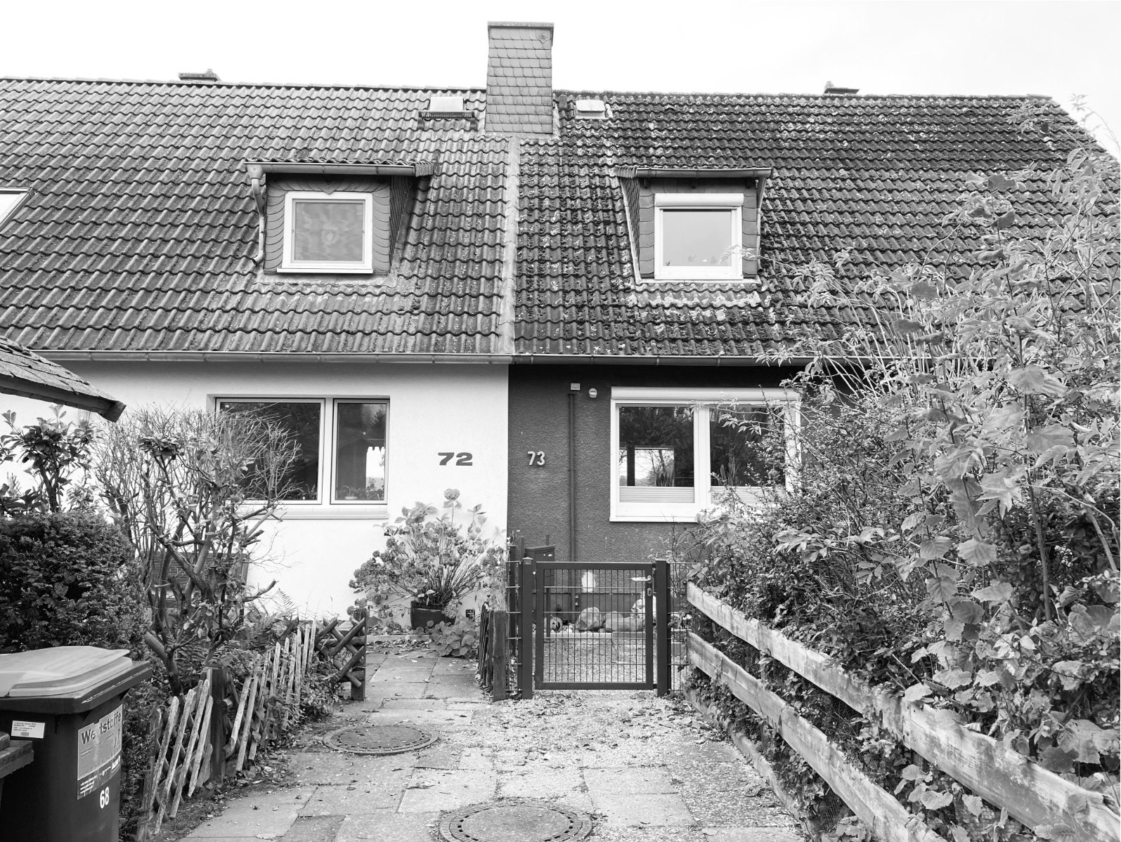Haus V is a typical single-family house from the 1950s situated in a suburb of Braunschweig which is oriented to the meadows in the south. The renovation of the dwelling retains its original two-storey character with a pitched roof. A new layout of the functions allows it to adapt to a more contemporary lifestyle by proposing a new location and extension of the kitchen, the living and dining room and the bedrooms. Although the renovation is about seventy years later than the construction of the original house, the result is a harmonious unit. In this juxtaposition, the most evident differentiation is through the flat roofs of the extended sections to the south and west, a new metallic pitched roof and the insulation of the exterior walls painted in a textured grey colour. The renovation echoes the original design of the house with a new and contemporary expression. The office, to the north, is accessible from the main entrance and detachable from everyday life. The most prominent extended volume contains the master bedroom on the first floor and the living room on the ground floor, with views over the fields and direct access to the garden. The open plan creates an informal atmosphere: the new flow of spaces transforms the living of the house into a continuous experience where family and guests can feel comfortable and explore different eating or seating areas, enjoy the morning light and the view at sunset.